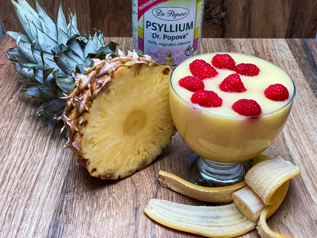 Vše rozmixovat, nalít do poháru a nechat pár minut psyllium pracovat. Potom přidáme ovoce a lahodná, osvěžující dobrota je na stole. Rychlá, zdravá, dobrá a sytá kašička plná vitamínů, minerálů a vlákniny. Jako základ můžeme použít i jiné ovoce, například ananas, který se výborně hodí pro všechny typy čistících a redukčních diet. Ananas pomáhá organismu překonat pocity únavy a hladu a navíc výborně odvodňuje.