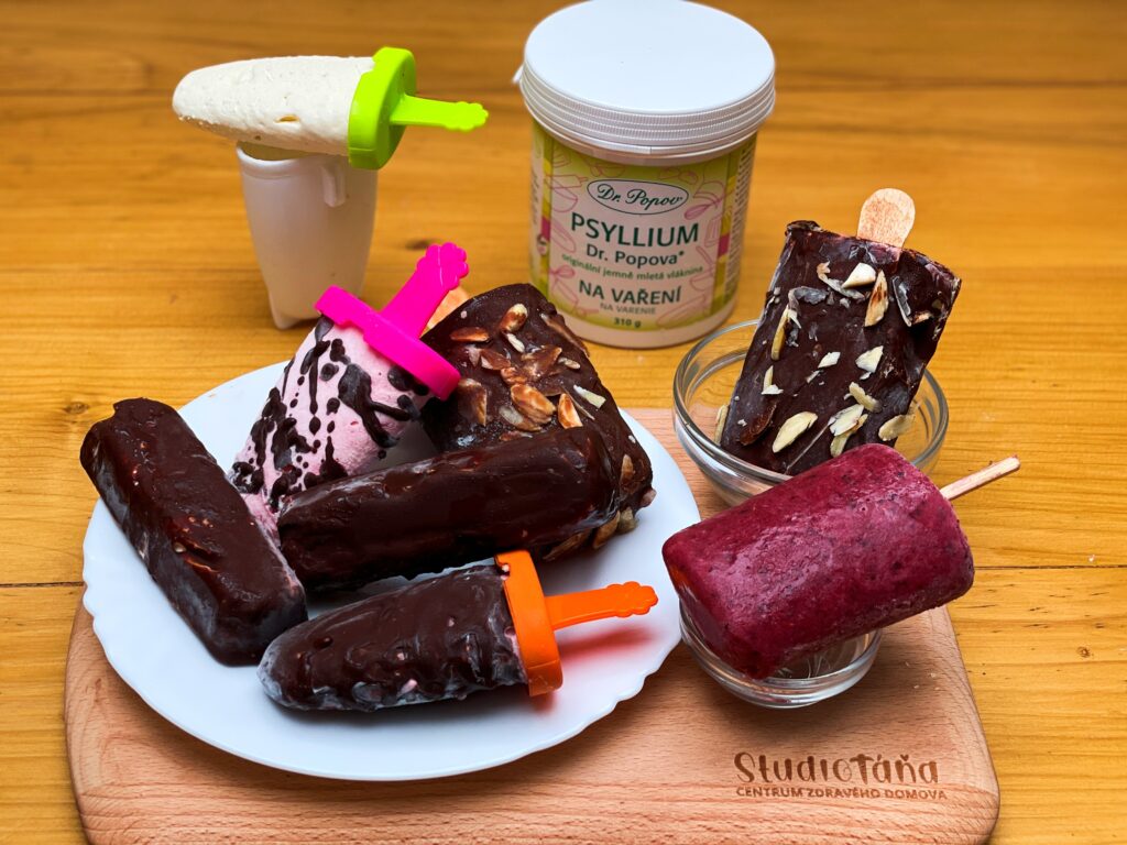 - Nechám zmrznout v tvořítku a namočím do čokolády. Takový nanuk je i super svačina, kterou děti rozhodně přivítají. Další jejich výhodou je konzistence, která se díky psylliu v teple tak rychle nerozpouští.