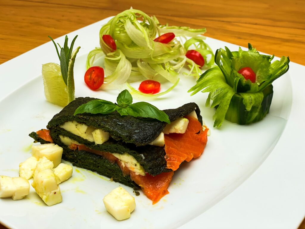 Kopřivová omeleta s uzeným lososem a Balkánským sýrem
