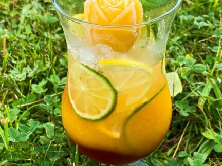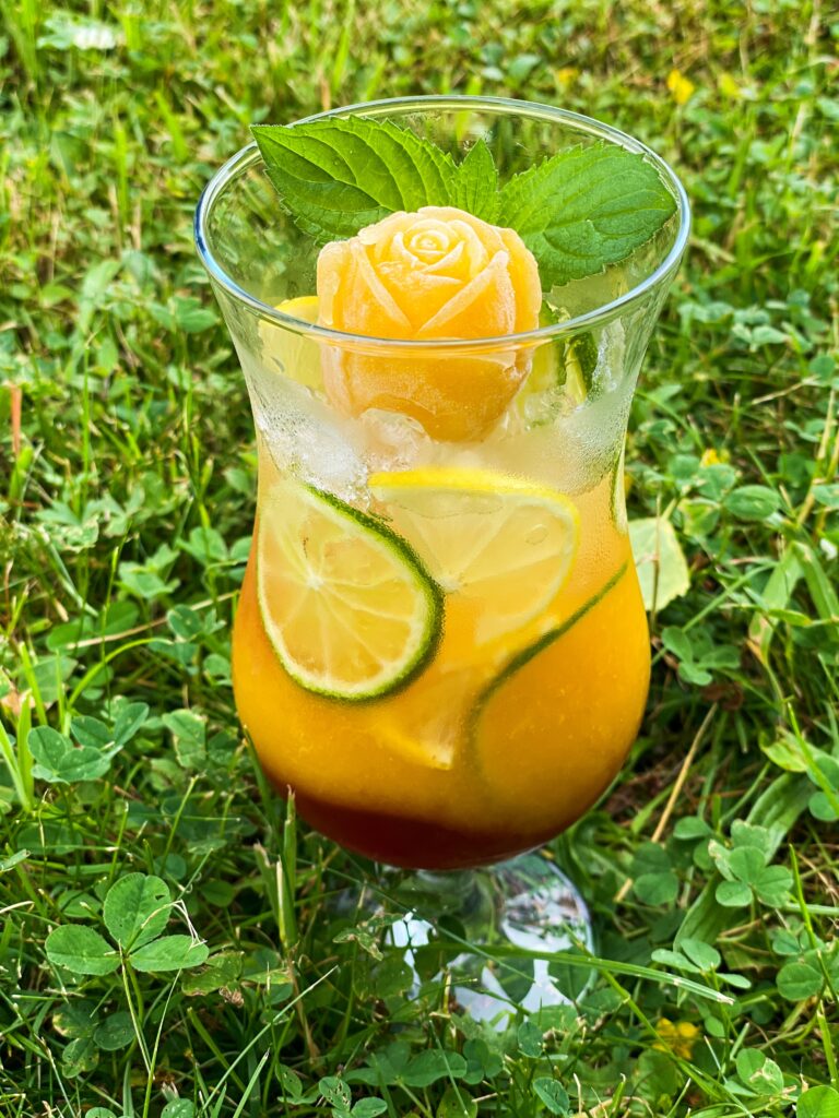 • na plátky citron, limetku a zasypeme ledovou tříští