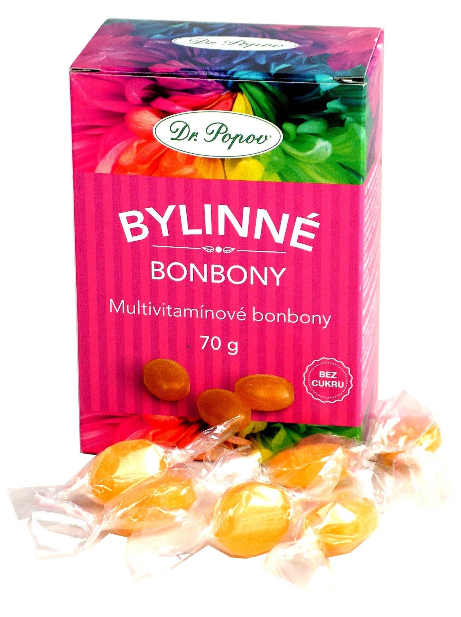 Bylinné bonbony Dr. Popova – mají sníženou kalorickou hodnotu o 40 % (oproti bonbonům s obsahem cukru).