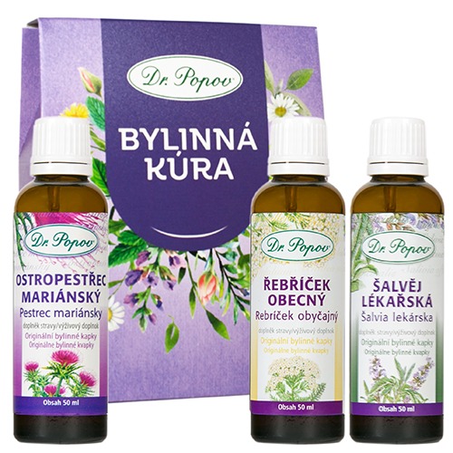 Bylinná kúra Dr. Popova Dobré trávení obsahuje kapky Ostropestřec mariánský, Řebříček obecný a Šalvěj lékařskou. Kúra je určená na 1 měsíc užívání.