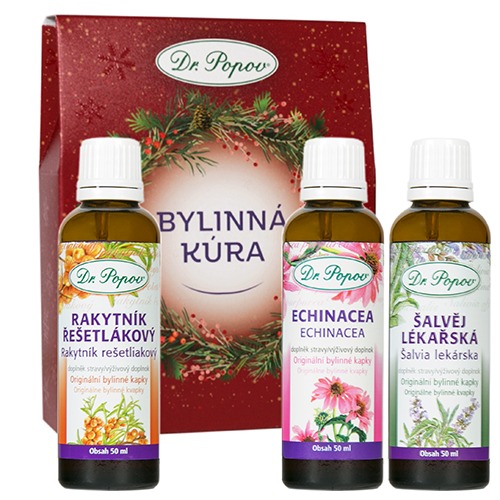 Bylinná kúra Dr. Popova Imunita obsahuje kapky Rakytník řešetlákový, Echinaceu a Šalvěj lékařskou. Kúra je určená na 1 měsíc užívání.