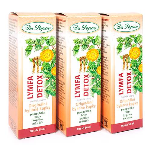 Originální bylinné kapky Dr. Popova Lymfa – detox obsahují 7 výtečných bylin, známých pro svoje detoxikační účinky na organismus.