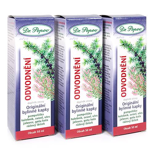Ušetřete díky speciálnímu balení – obsahuje 3 kusy originálních bylinných kapek Dr. Popova Odvodnění za zvýhodněnou cenu.