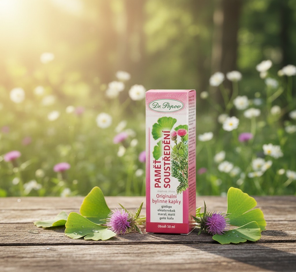 Ztrácíte se v každodenních povinnostech nebo vás čeká náročné období plné učení a práce? Naše unikátní receptura kombinuje pět silných bylin, které jsou po staletí využívány pro podporu kognitivních funkcí a psychické odolnosti a napomáhají správné činnosti mozku. Použité byliny patří mezi adaptogeny, rostliny, které se podílejí na duševní i tělesné rovnováze. Originální bylinné kapky Dr. Popova Paměť – soustředění  jsou navrženy pro ty, kteří potřebují udržet pozornost, podpořit schopnost pamatovat si a zvládnout stres s lehkostí.