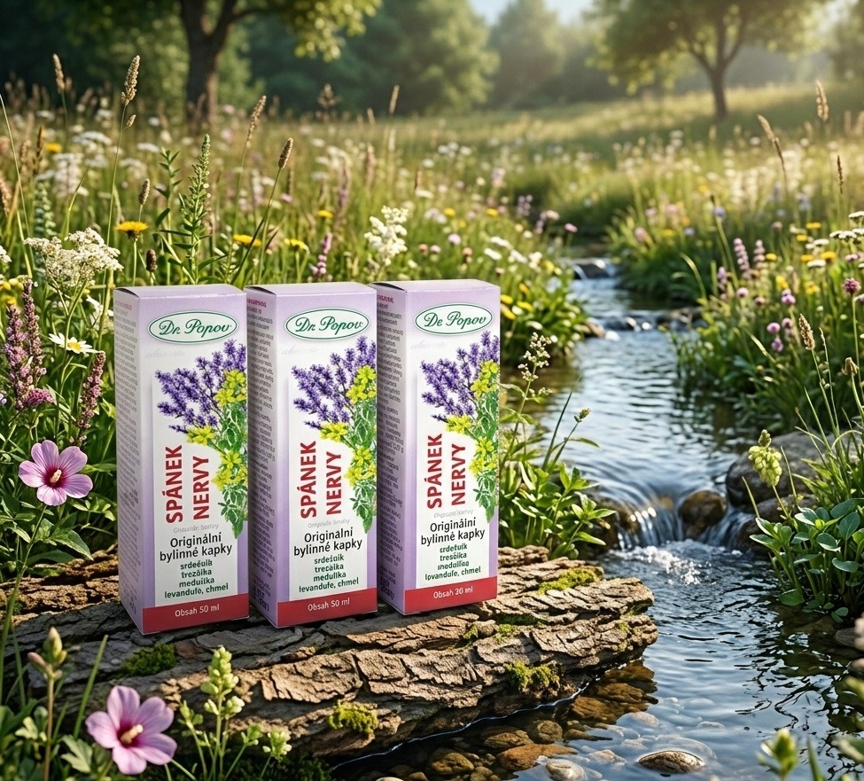 Originální bylinné kapky Dr. Popova Spánek – nervy pro chvíle vnitřního klidu a večerní pohodu. Obsahují 5 tradičně užívaných bylin, které jsou známé pro svoje výborné relaxační a zklidňující účinky.