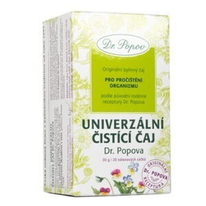 Univerzální čistící čaj Dr. Popova obsahuje byliny vhodné pro čištění organizmu. Kopřiva čistí krev, podporuje správnou činnost ledvin a stimuluje činnost slinivky, lípa je známá pro své antioxidační vlastnosti a společně s maceškou se také podílejí na čištění krve. Pro vyšší účinek jsme do čaje použili ještě ibišek, řepík, třezalku, řebříček a oman.