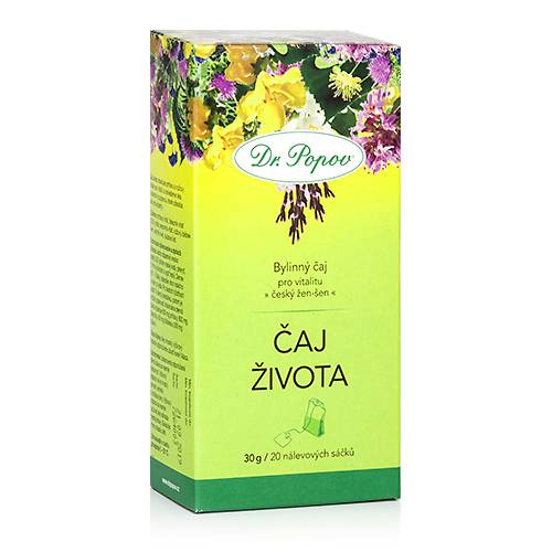 Čaj života je elixír, který probudí vaši vitalitu. S každým šálkem čaje se spojíte s přírodou a posílíte svou vnitřní energii. Je ideální volbou pro začátek dne, když potřebujete nastartovat, nebo kdykoli, když cítíte, že vám dochází dech. Čaj života Dr. Popova je bylinná směs, pro svoje účinky přezdívaná jako „český žen-šen“. Obsahuje kopřivu a růžový ibišek, které přispívají k celkové vitalitě a osvěžení těla. Sporýš a pampeliška působí jako antioxidanty.