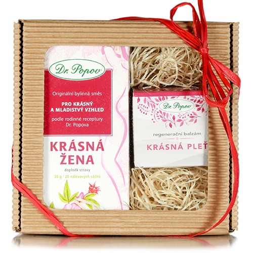Balíček obsahuje Funkční čaj Krásná žena a Přírodní regenerační balzám Krásná pleť
