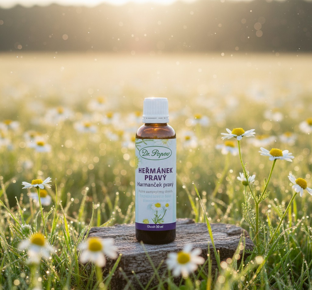 Heřmánek pravý je jemný, ale účinný spojenec pro celou rodinu. Dopřejte si sílu přírody v každé kapce! Ať už potřebujete zklidnit rozbouřenou mysl, ulevit namáhanému trávení nebo jen najít chvilku klidu, heřmánek je tu pro vás.
