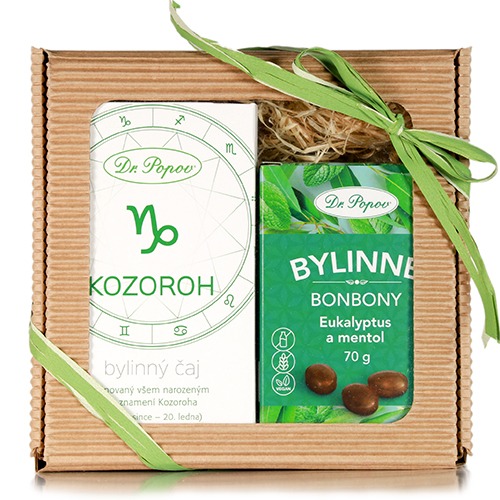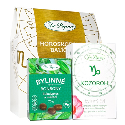 Krásný Horoskopový balíček, kterým potěšíte všechny vaše blízké ve znamení Kozoroha. Balíček obsahuje bylinný čaj Kozoroh a bonbony s intenzivní chutí Eukalyptus a mentol.
