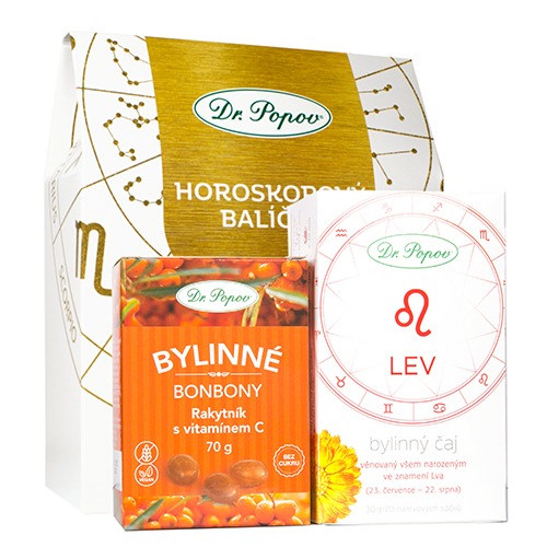Krásný Horoskopový balíček, kterým potěšíte všechny vaše blízké ve znamení Lva. Balíček obsahuje bylinný čaj Lev a chutné bylinné bonbony Rakytník s vitamínem C.