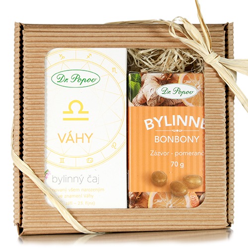 Krásný Horoskopový balíček, kterým potěšíte všechny vaše blízké ve znamení Vah. Balíček obsahuje bylinný čaj Váhy a chuťově výborné bonbony Zázvor pomeranč.