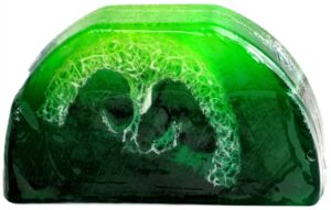 V mýdle je zalitá přírodní lufa – pro šetrný peeling a jemnou masáž. Pokožka je díky tomu prokrvená, zbavená nečistot a odumřelých buněk.