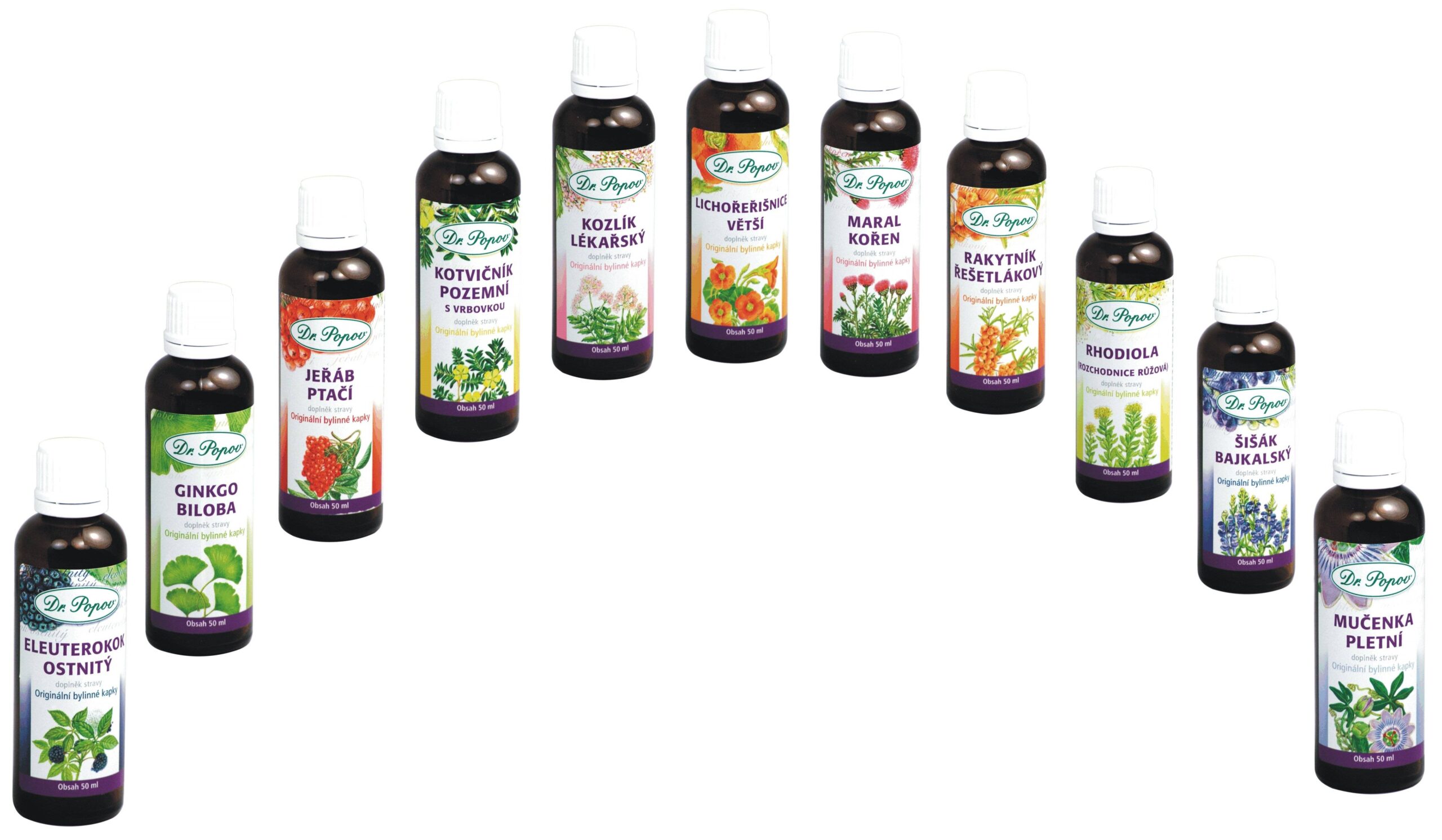 Všechny směsné bylinné kapky Dr. Popova vycházejí z originálních receptur, které zaručují vysokou účinnost výsledné tinktury.
