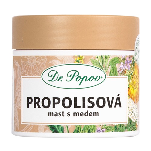 Propolisová mast Dr. Popova je obohacena o med a pravý včelí vosk. Med umocňuje pozitivní účinky propolisu a včelí vosk má výborné ochranné a hydratační schopnosti. Díky medu a včelímu vosku se tak zvyšuje celková kvalita masti.