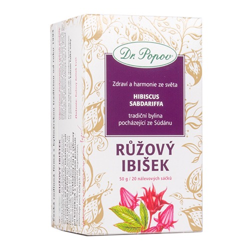 Bylinný čaj Růžový ibišek Dr. Popova je exotický porcovaný čaj, ideální pro doplnění tekutin a solí při zvýšeném pocení – např. po sportu, práci při vysokých teplotách, při pobytech v tropickém klimatu, pro osoby, které se silně potí, u žen v klimakteriu. Růžový ibišek obsahuje vysoké procento organických kyselin a vitamín C, podporuje správnou činnost ledvin a odvodňuje organizmus. Je také účinný při zácpě, pomáhá udržovat střeva ve zdravém stavu a působí jako antioxidant.