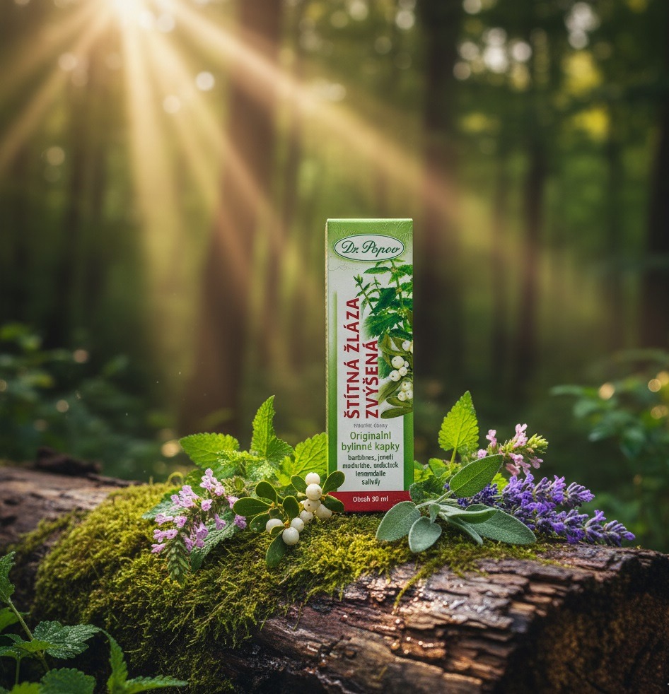 Zvýšená činnost štítné žlázy se může v těle projevovat neklidem, nervozitou nebo třesem. Originální bylinná tinktura Dr. Popova Štítná žláza zvýšená obsahuje 6 osvědčených bylin, které přirozeně pomáhají zklidnit a navrátit tělu rovnováhu.
