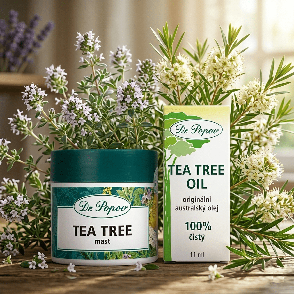 Hledáte spolehlivého pomocníka, který si poradí s plísněmi, akné i drobnými oděrkami? Tea Tree mast Dr. Popova je osvědčený bylinný přípravek, který v sobě spojuje sílu australské přírody a tradiční české receptury. Tato mast je vyrobena podle unikátní technologie, kde hlavním hrdinou je Tea Tree Oil (čajovníkový olej) v nejvyšší lékopisné kvalitě. Tento olej je známý svými silnými antiseptickými, regeneračními a hojivými účinky.