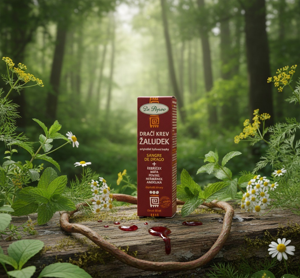 Naše kapky Sangre de Drago Žaludeční komplex jsou výsledkem precizního spojení vzácné amazonské pryskyřice a pěti bylin, které jsou po staletí pilíři evropského bylinkářství. Vytvořili jsme produkt pro rok 2026, který jako jediný v České republice kombinuje tyto konkrétní složky v jednom synergickém celku.