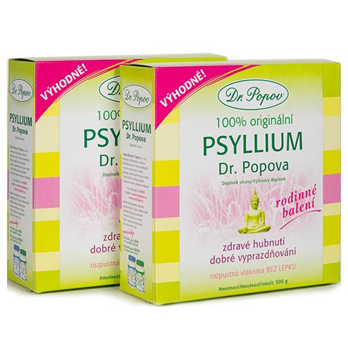 Psyllium Dr. Popova změkčuje stolici a zároveň zvětšuje její objem. Tím napomáhá správnému a snadnému vyprazdňování, což je důležité při tuhé a nepravidelné stolici, diskomfortu v oblasti konečníku, v těhotenství, apod.
