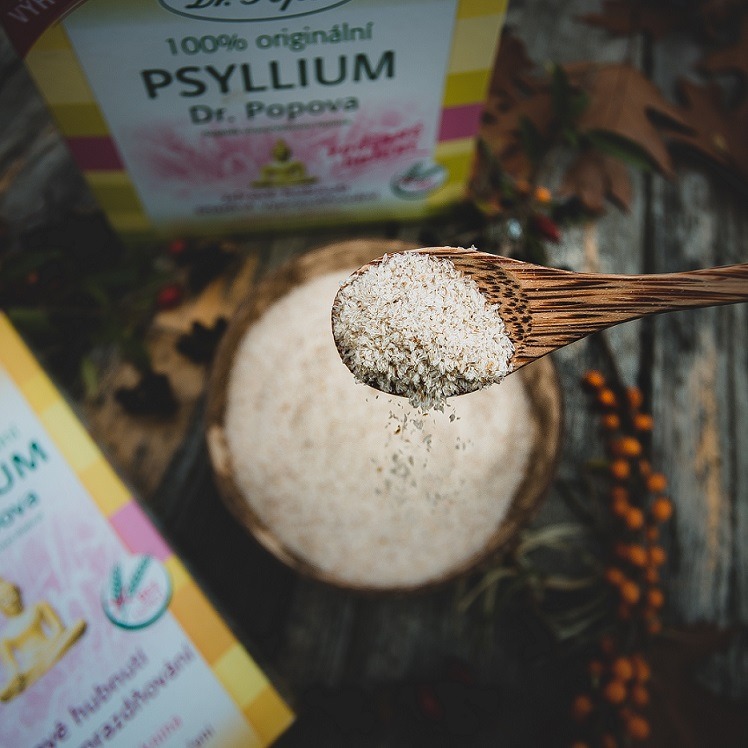 Psyllium Dr. Popova změkčuje stolici a zároveň zvětšuje její objem. Tím napomáhá správnému a snadnému vyprazdňování, což je důležité při tuhé a nepravidelné stolici, diskomfortu v oblasti konečníku, v těhotenství, apod.