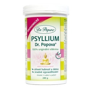 Psyllium Dr. Popova změkčuje stolici a zároveň zvětšuje její objem. Tím napomáhá správnému a snadnému vyprazdňování, což je důležité při tuhé a nepravidelné stolici, diskomfortu v oblasti konečníku, v těhotenství, apod.